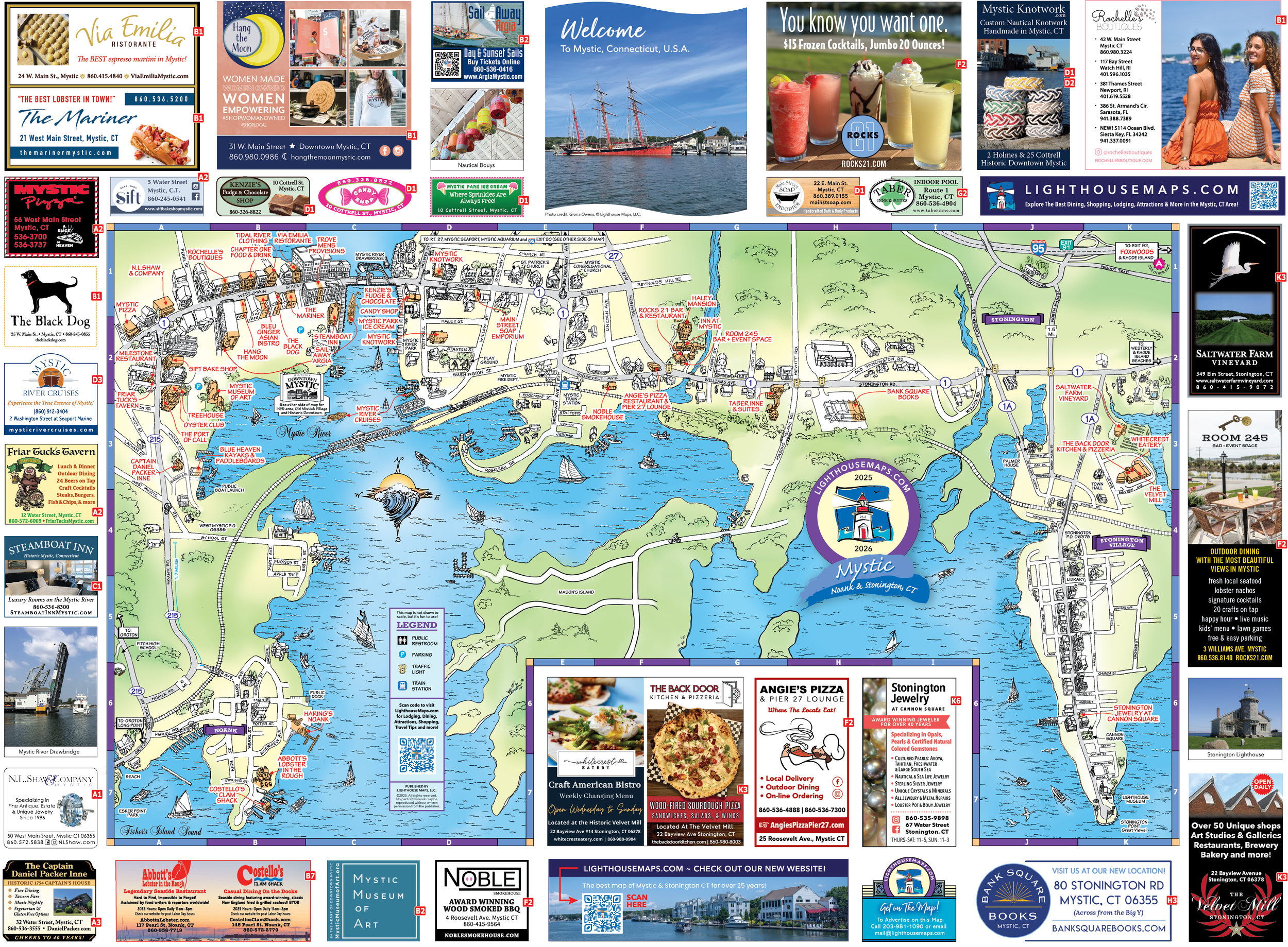Historic Downtown Mystic - Noank - Stonington Village - Rt 1 between Mystic & Stonington - Mystic train station - Mystic harbor